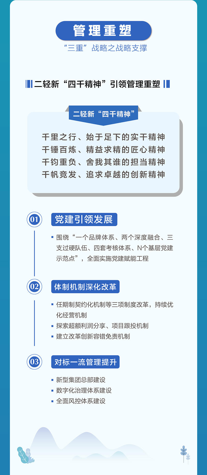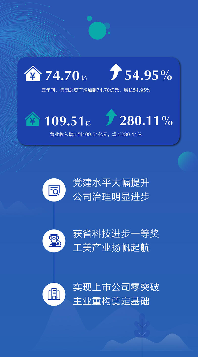 近年来, 在省委省政府正确领导下,在省国资委的指导监督下,二轻集团高举习近平新时代中国特色社会主义思想,紧紧围绕“一带一路”、长三角一体化、军民融合等国家战略,服从服务于省委省政府“四大建设”“八大万亿产业”“凤凰行动”、数字经济“一号工程”和“文化强省”建设重大决策部署,狠抓强根固魂、主业培育、改革攻坚、管理提升和历史遗留问题破解等“五大工程”,全面推进“五个二轻”建设,致力于走高质量发展道路。三年来营业收入、资产规模和净资产收益率的增长幅度均位居省属企业前茅,重大经营风险防范成效明显,企业转型发展可持续发展的态势稳中向好。