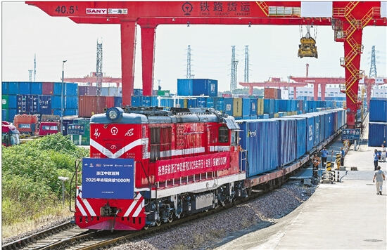 负责开行该班列的中国铁路上海局集团有限公司物流事业部班列产品部工作人员介绍,今年,浙江中欧班列开行情况持续向好,较去年突破1000列(去程)整整提前了1个月。光伏板、新能源汽车、跨境电商商品等中国制造的高附加值货品,持续不断通过“钢铁驼队”运抵海外,构建起畅通高效、多向延伸、海陆互联的国际物流通道,为我国与亚欧国家贸易往来提供可靠物流选择,助力国际产业链供应链安全稳定畅通。