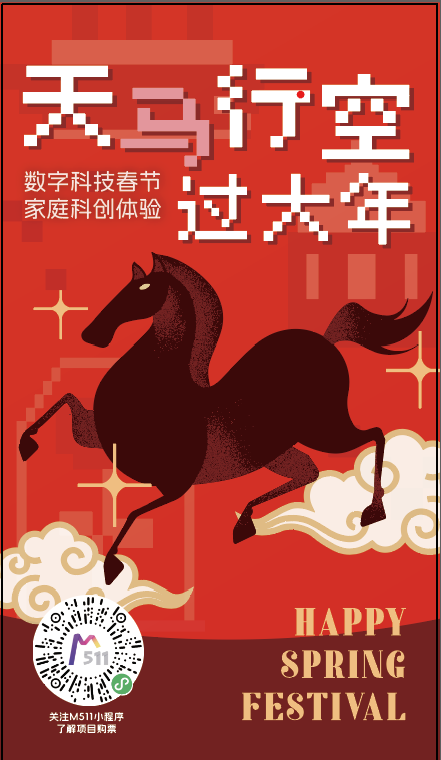 骏驰新岁,科技迎新!M511 光影汇以“天马行空过大年”为主题,打造沉浸式、多元化的新春潮玩体验,让马年的新春在科技与文化的交融中更具诗意与趣味。活动围绕“马上看”“马上乐”“马上玩”三大主题展开,从早到晚玩不重样。