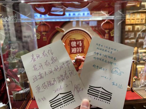 这个春节,合一书局陆续推出多项融趣味与年俗于一体的温情活动。在大寒、腊八、立春等节点,书局免费为游客提供合一书局专属明信片,供游客记录当下的心情;用一碗碗热气腾腾的腊八粥将暖意从手心传至心底;新春专享的“古镇黄历大海报”和“鸿运当头打卡墙”为游客打造了专属打卡位;新年许愿瓶让I人和E人的互动更加自在。每一份心意都承载着这个“小家”对八方游客的诚挚问候和温情关怀。