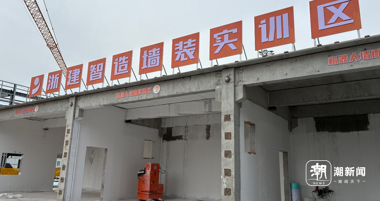 在浙建集团智能建造实训基地,整平、喷涂、抹灰等多类建筑机器人有序作业。几名身穿工装的操作人员站在一旁,轻点屏幕、实时监控。曾经尘土飞扬、人声嘈杂的工地,如今整洁有序、科技感十足。
